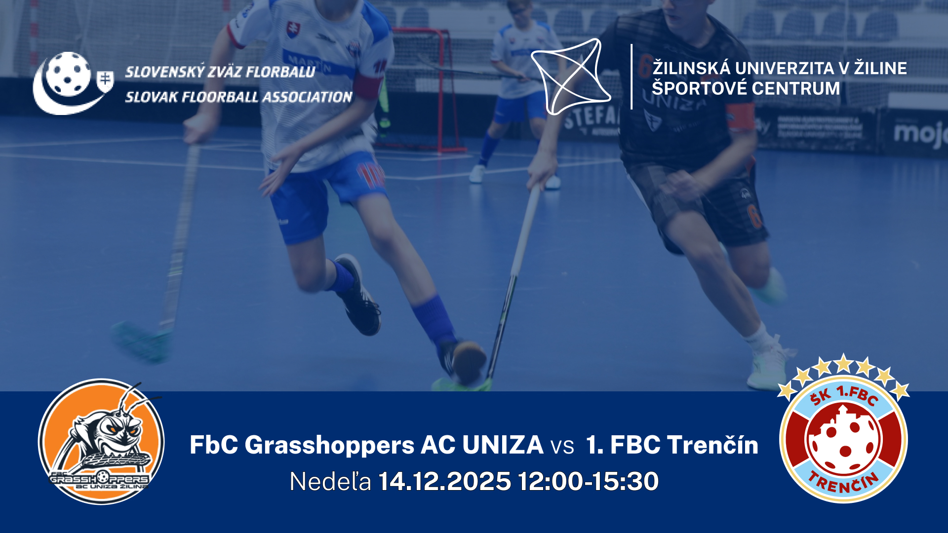 Dňa 14.12.2025 sa od 12:00 do 15:30 v priestoroch Športového centra UNIZA uskutoční extraligový zápas juniorov mužov vo florbale medzi FbC Grasshoppers AC UNIZA Žilina a 1. FBC Trenčín.
