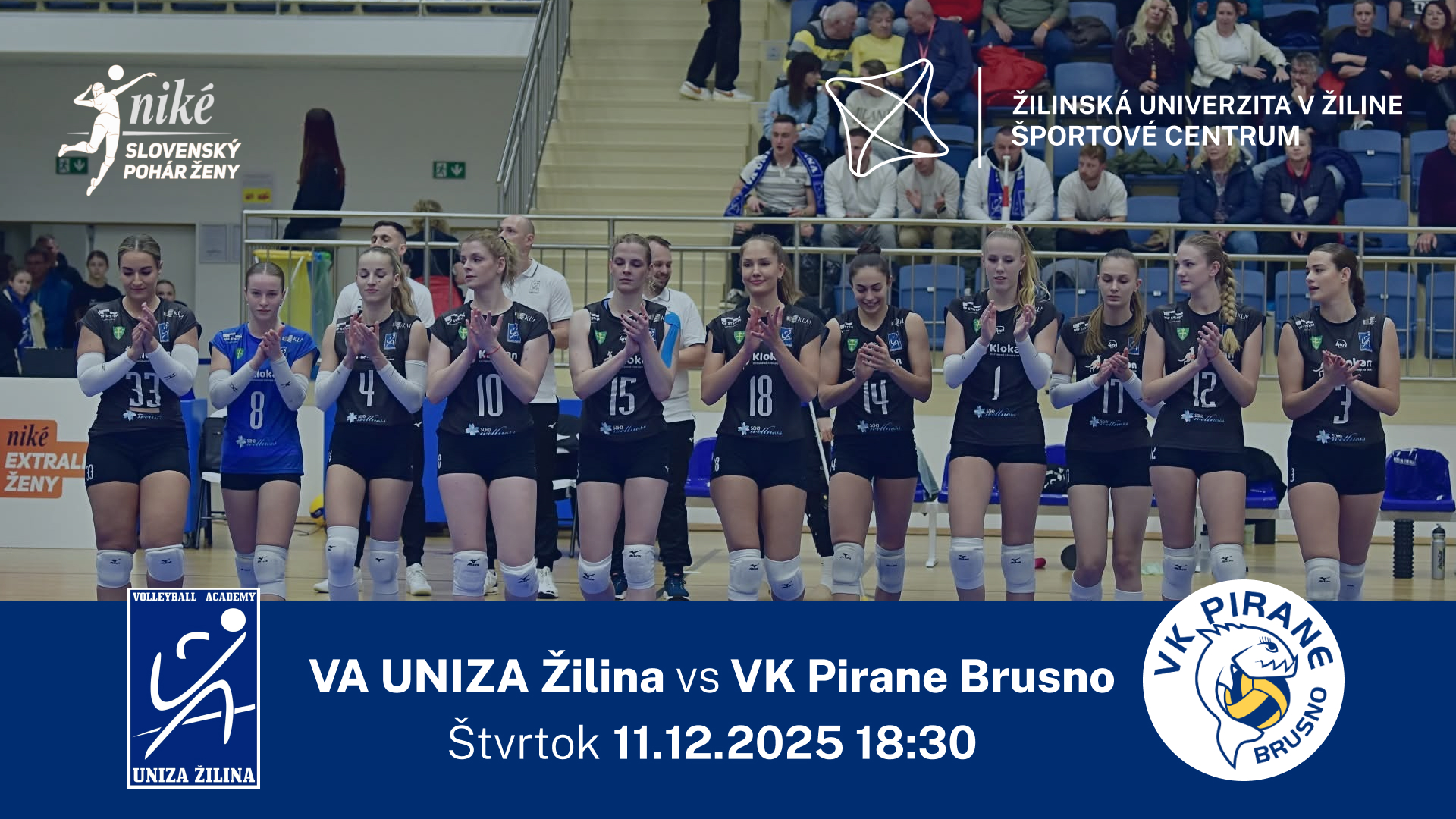 Dňa 11.12.2025 sa v priestoroch Športového centra UNIZA uskutoční o 18:30 zápas Slovenského pohára vo volejbale žien medzi VA UNIZA Žilina a VK Pirane Brusno.